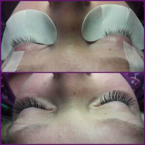 Wimpernextensions werden mit einem Spezialkleber einzeln, Härchen für Härchen, auf jede einzelne Naturwimper appliziert. Hierbei kann man wählen zwischen Verlängerung und Stärke der künstlichen Wimper. Man sollte dabei auf die vorgegebene Naturwimper achten.